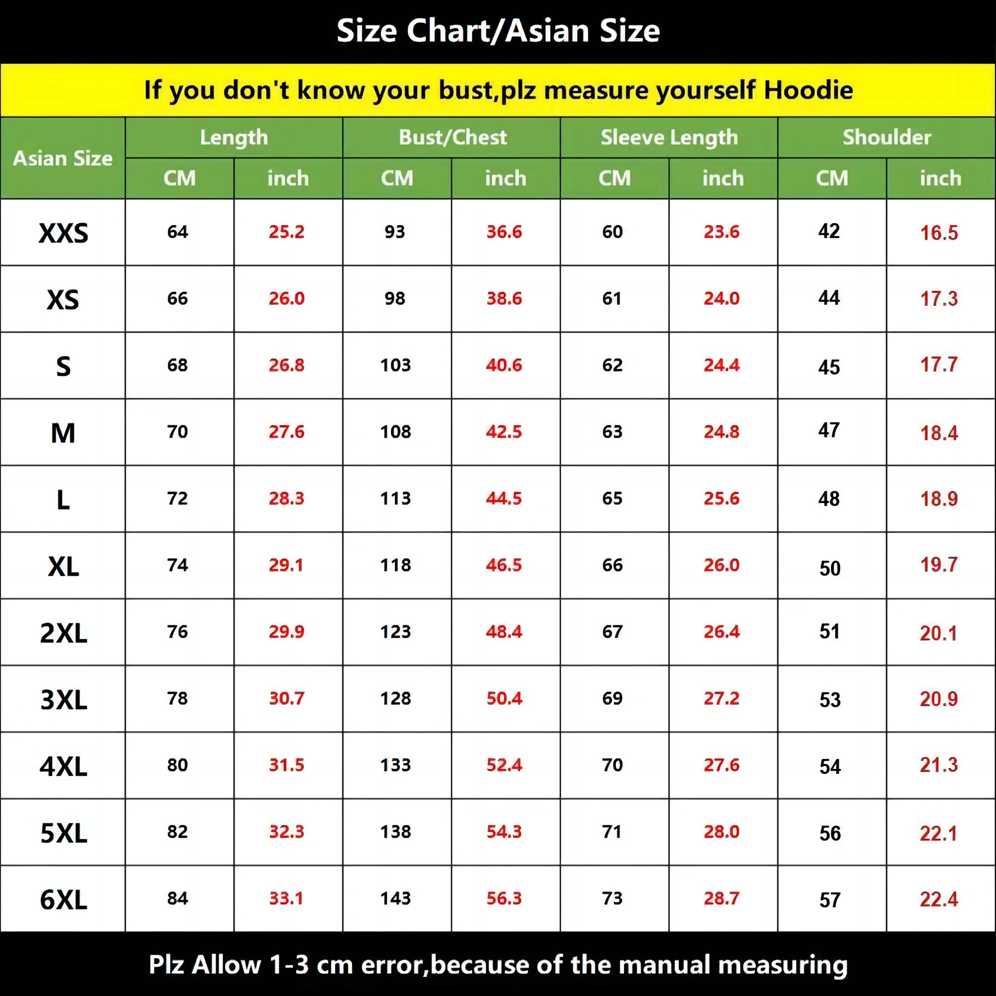 2.All dimensions are measured by hand.Due to different product batches, there may be 1cm-3cm tolerance.(1cm=0.393in, in=2.54cm)